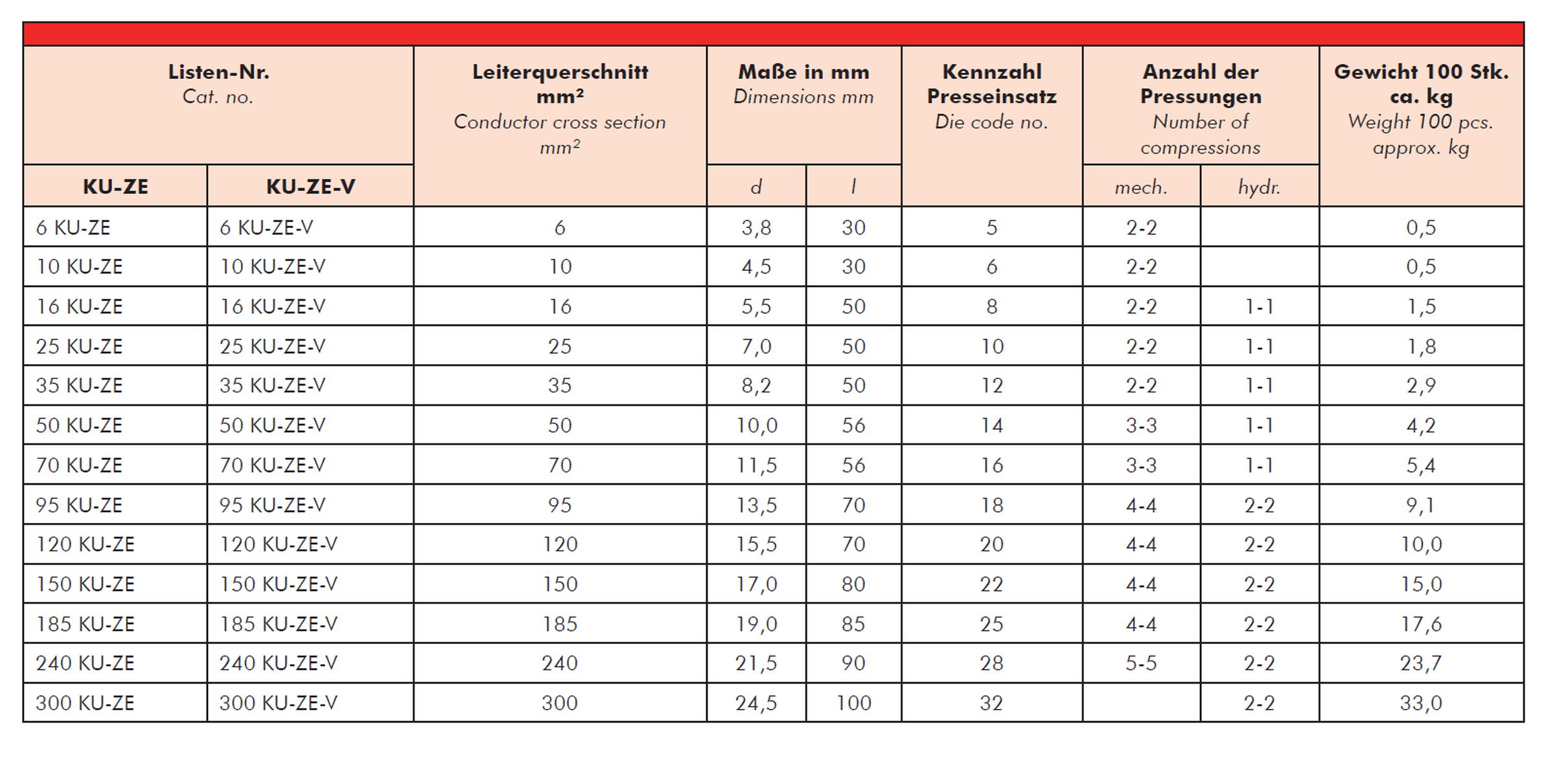 Technische Hinweise und Anwendungsinformationen (Pressverbinder und -kabelschuhe)