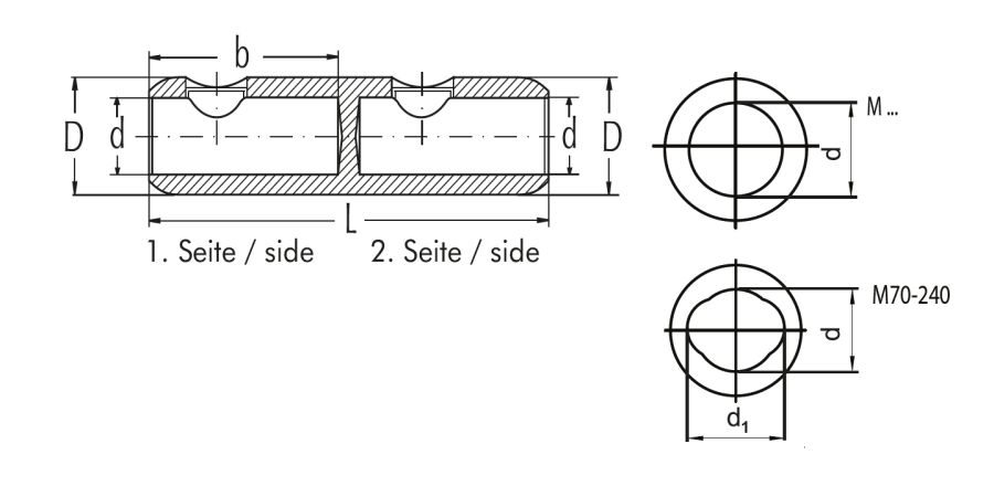 einer Hülse geklemmt werden. Die Prüfung der Verwendbarkeit auf Grundlage der tatsächlichen Leiterabmessung, obliegt im Einzelfall dem Anwender. Dies gilt auch für die Verwendung der Produkte beim Einsatz von Leitern der Klasse 6 oder anderer Sonderleiter.