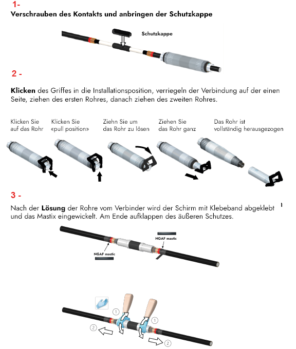 Der Anschluss des Leiters erfolgt über einem im Lieferumfang enthaltenen GPH Schraubverbinder, der je nach Bedarf einen Bereich von 35 mm² bis 630 mm² und unterschiedliche Leitermaterialien abdeckt.