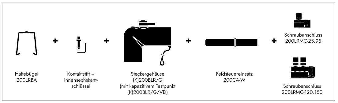 Zu einem Satz (K)200LR/G Winkelstecker gehören 3 x folgende Komponenten.