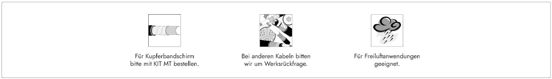 Einsatz bei kunststoffisolierten Mittelspannungskabeln mit fest verschweißten, graphitierten oder abziehbaren äußeren Leitschichten sowie bei gummiisolierten Leitungen mit abziehbaren äußeren Leitschichten. Bei anderen Kabelaufbauten bitten wir um Werksrückfrage.
