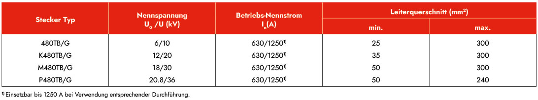 3) Da die Abmessungen für Kabel der Spannungsebene 20,8/36 (42) kV noch nicht standardisiert sind, sind die in der Tabelle angegebenen Leiterquerschnitte und deren Zuordnung der Durchmesser über Isolierung nur als Richtwerte zu betrachten. Bei der Garniturenbestellung für diese Kabel bitten wir Sie, den überprüften Durchmesser über Aderisolierung mit anzugeben.