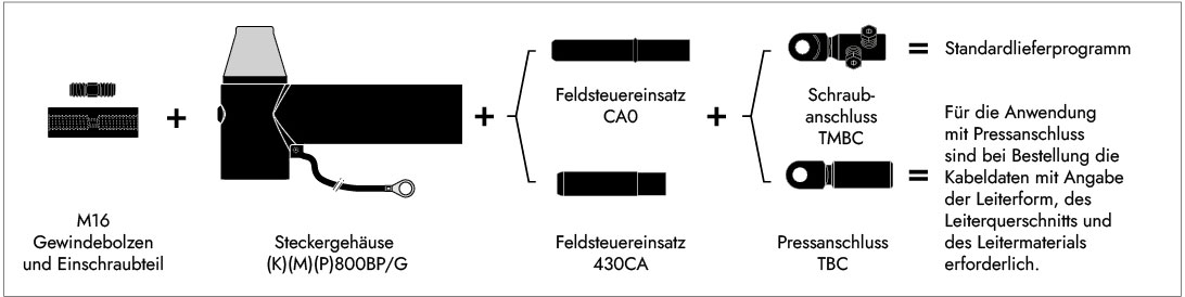 1. Anschlusskonus zur Verbindung mit dem Kompakt-T-Stecker 480TB/G, 484TB/G oder 489TB/G