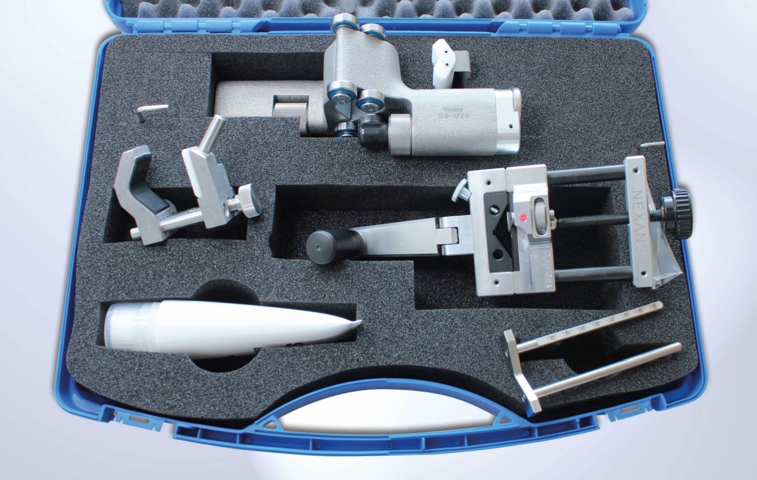 Der Werkzeugkoffer, besteht aus: Rundschälgerät, Mantel- und Isolationsschneider, Fasenschneider mit Radienmesser sowie Zubehör wie Anschlagringe, Gleitmittel, Innensechskantschlüssel und Anschlag für Rundschälgerät.