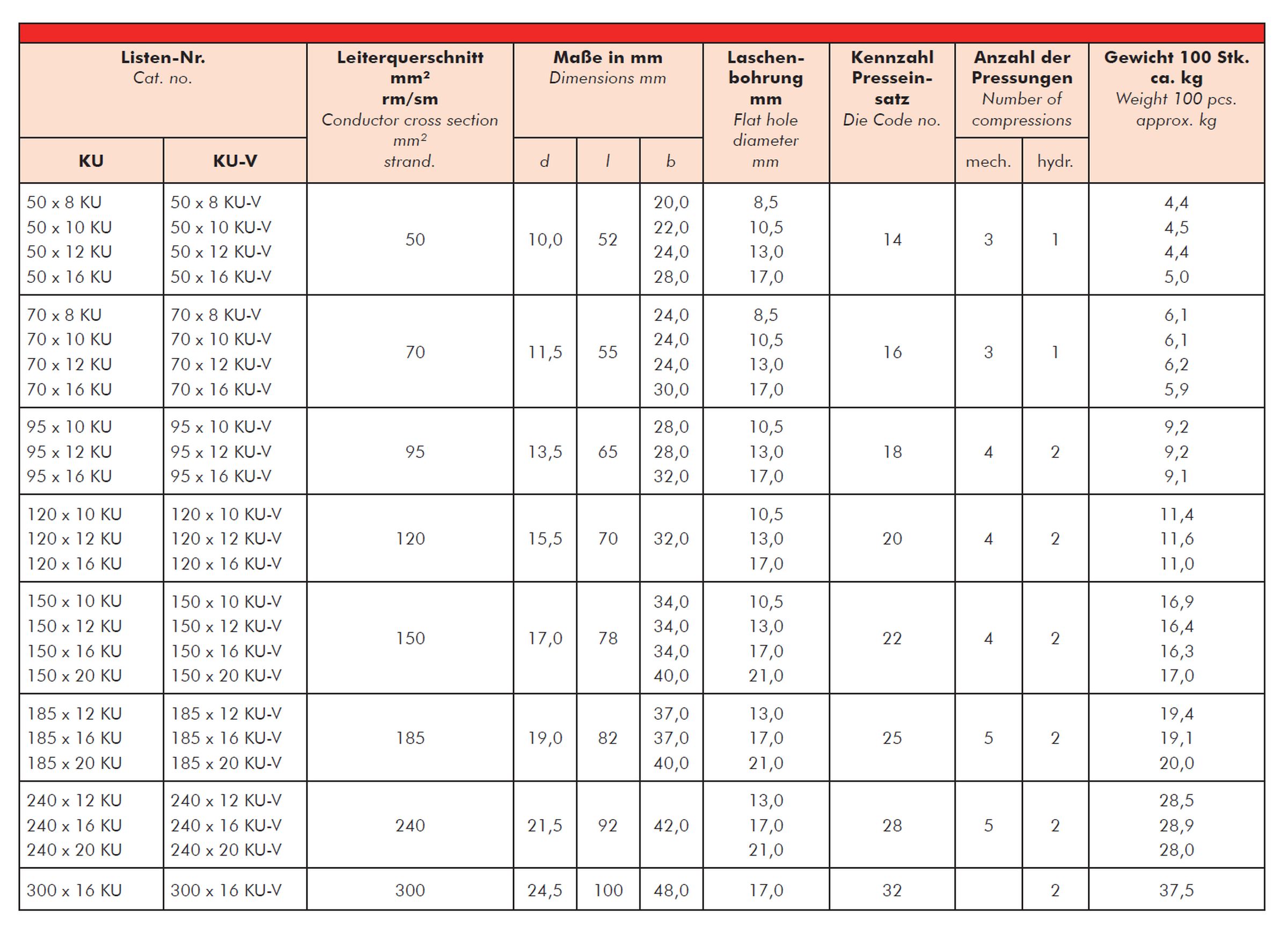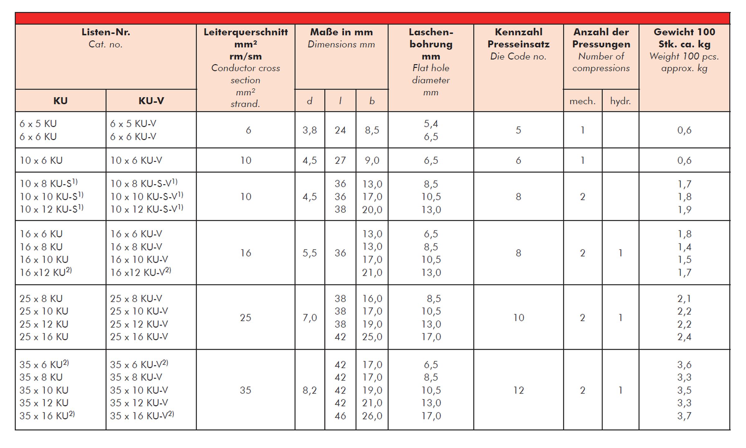 Compression cable lugs, Cu, acc. to DIN 46235 (KU/-V)