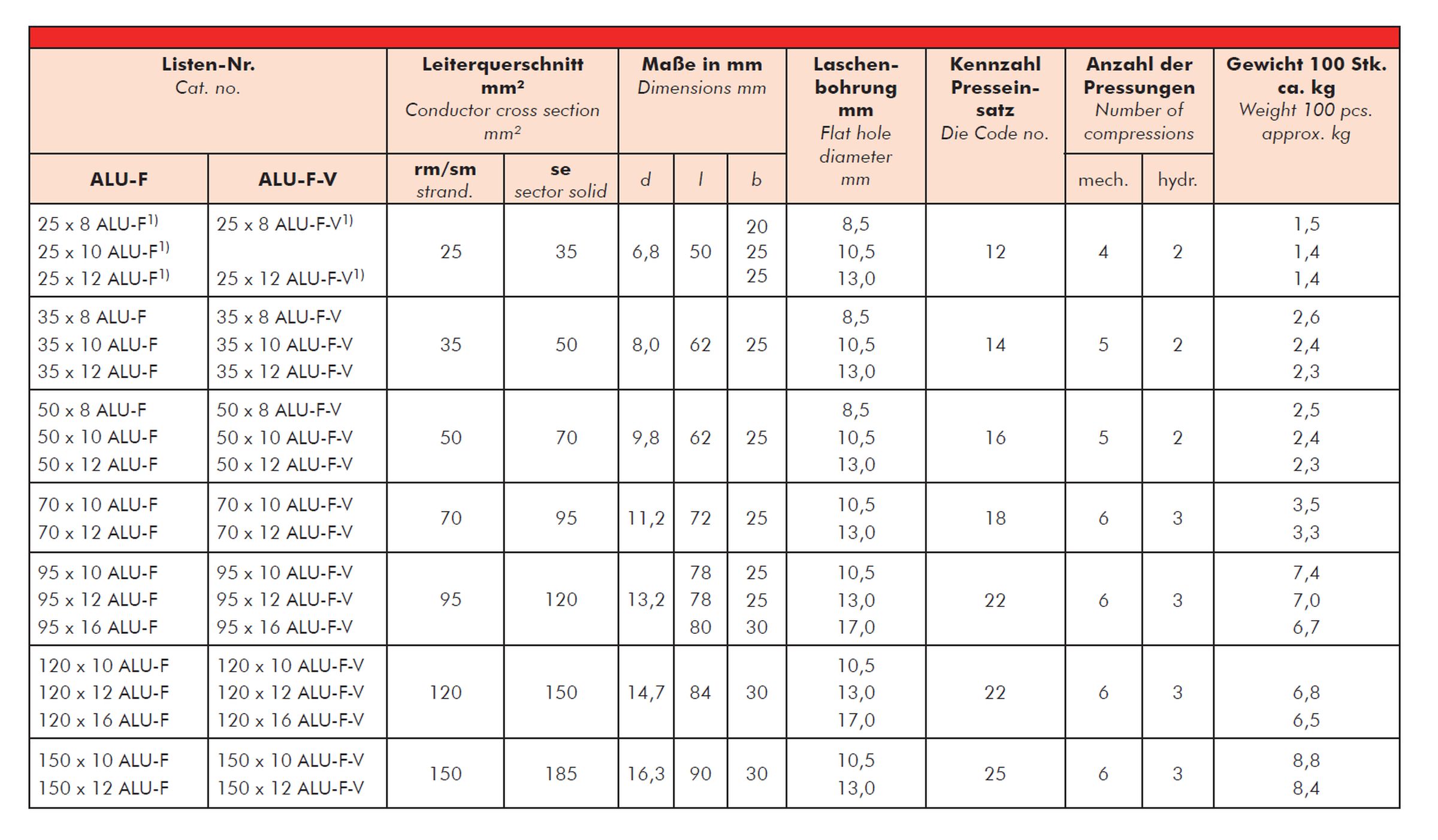 Compression cable lugs, Al, longitudinally sealed, acc. to DIN 46329