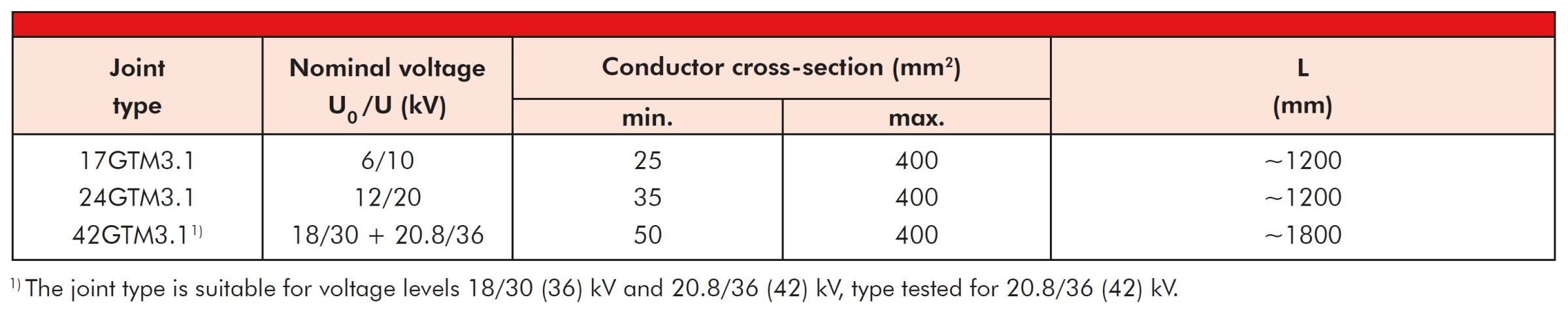 The heat-shrinkable transition joint GTM3.1 meets the requirements of CENELEC HD 629.2.