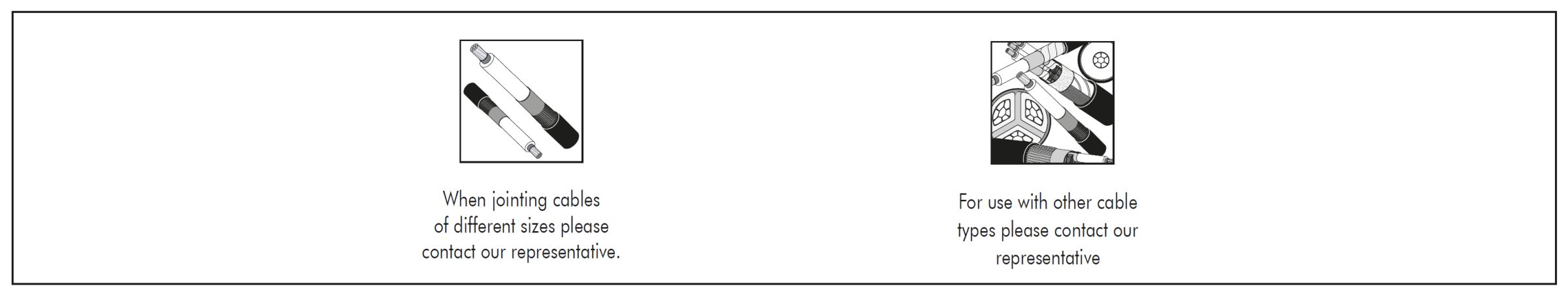 Select the order designation of the transition joint according to the cable type used and the diameter over core insulation. Joint types for connecting different conductor cross-sections available on request. Transition joints for 12/20 (24) kV and 18/30 (36) kV H-cables to XLPE-insulated single-core cables available on request.