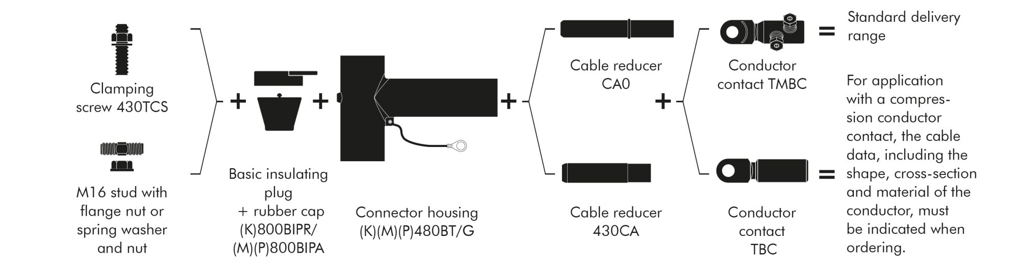 1 compact tee connector kit for 12/20 kV, for 95-300 mm² with mechanical conductor connector and clamping screw 430 TCS.