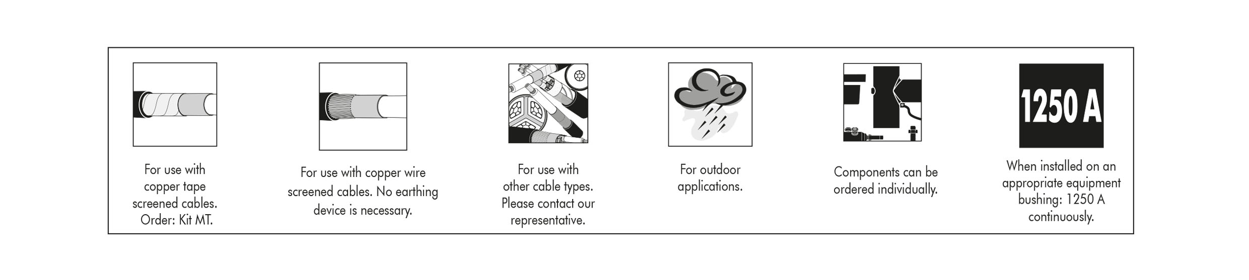 Suitable for installation on polymeric insulated medium voltage cables with extruded easy strip conductive screen or bonded extruded conductive screen. For use with other cable types please contact our sales representative.